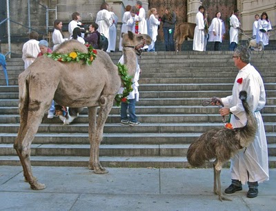 After last week’s discussion of dogs in church, listener Jennifer sent us a picture of the annual blessing of the animals at the Cathedral of St John the Divine in NYC on the feast of St Francis of Assisi: