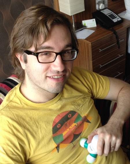 Martin the Sound Man has a little alone time with the personal massager in the Holiday Inn.