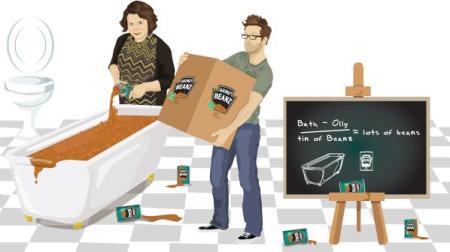 Helen and Martin prepare Olly’s bean bath, by Sally. http://www.weepaperpeople.co.uk/2015/03/12/answer-me-this-bean-bath/