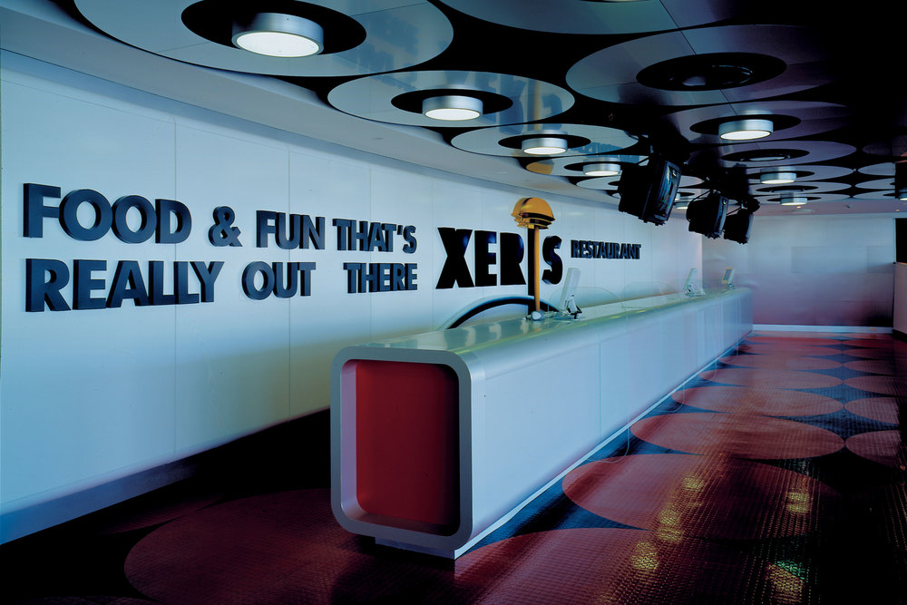 Once you’d wandered into the restaurant, you were ushered into a “spaceship” (better described as a clunky lift) which beamed you up into the restaurant, where you were met with space pod tables and Martian-themed food. Don’t recall there being too much red food dye in the ingredients but it was definitely all very weird. I recall one particular highlight being a touchscreen ordering system at each table, which was inevitably smeared with greasy handprints from the kids who’d sat there just before you.