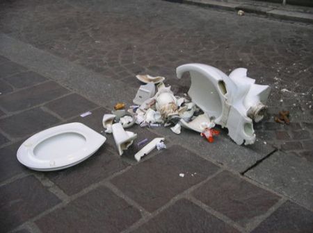 After a several hours and a few beers our neighbors starting talking about what a good job they had done in refurbishing and decorating their main bathroom upstairs and that I should go and have a look. So off I went and yes it was really nice n- ew bathroom sink and toilet etc. I lifted the seat on the toilet so I could have a pee. Then I went to lower the seat (I am a well-trained house husband) and to my horror it slipped and fell hard and cracked.